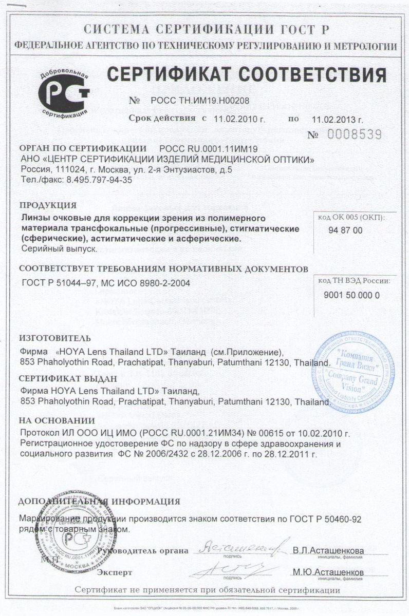 Мы работаем только с официальными поставщиками линз для очков.