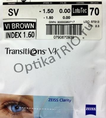 Заказ складских линз Carl Zeiss 1.6 AS PhotoFusion возможен только с покрытием: